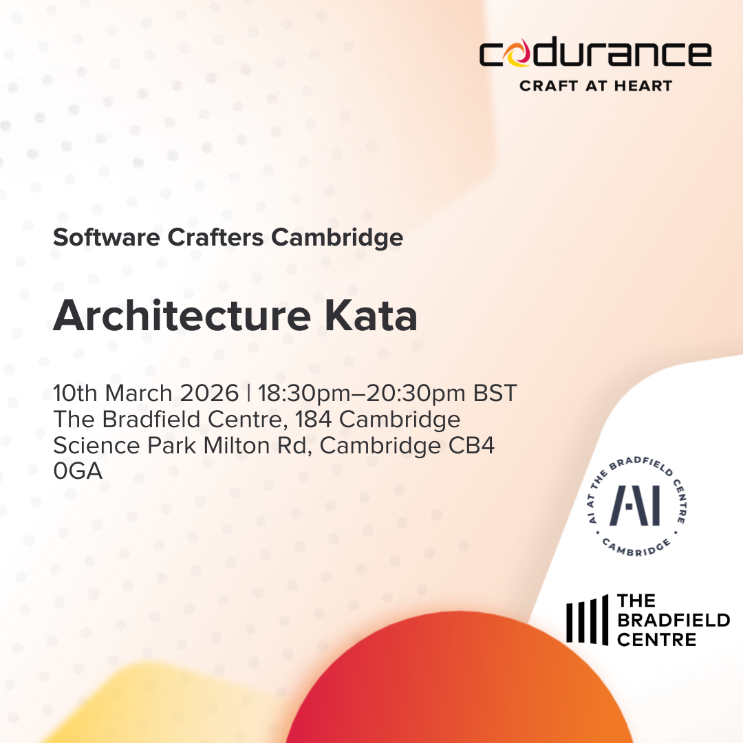 This meetup would not be possible without the support of The Bradfield Centre who provide their amazing space and Codurance, the global software engineering consultancy and founders of the Software Crafters communities.