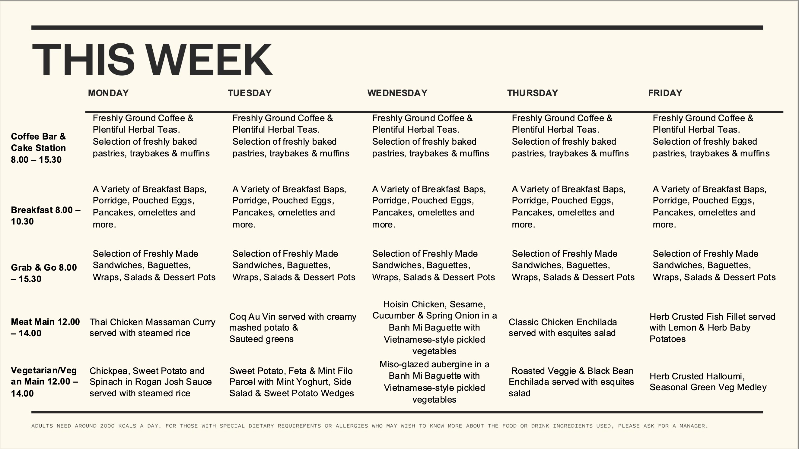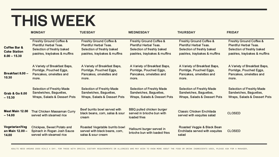 Our Cafe provides a range of hot and cold catering options for your meetings and events. Download the catering brochure for more information.