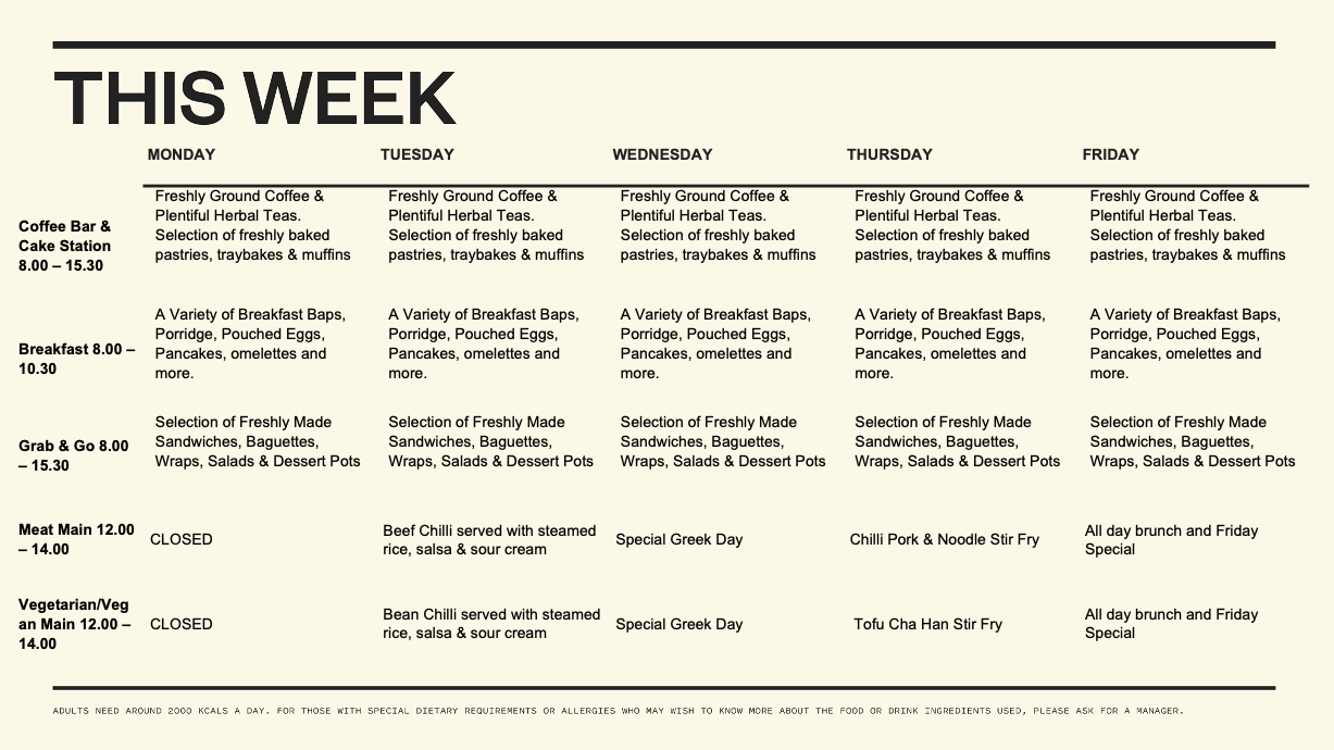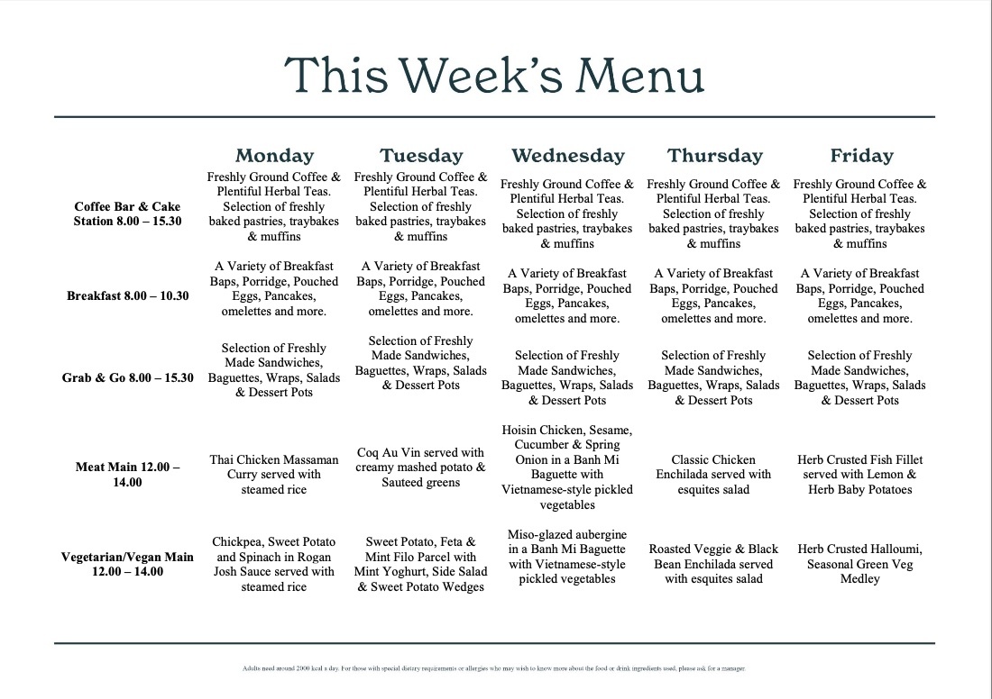 Our Cafe provides a range of hot and cold catering options for your meetings and events. Download the catering brochure for more information.